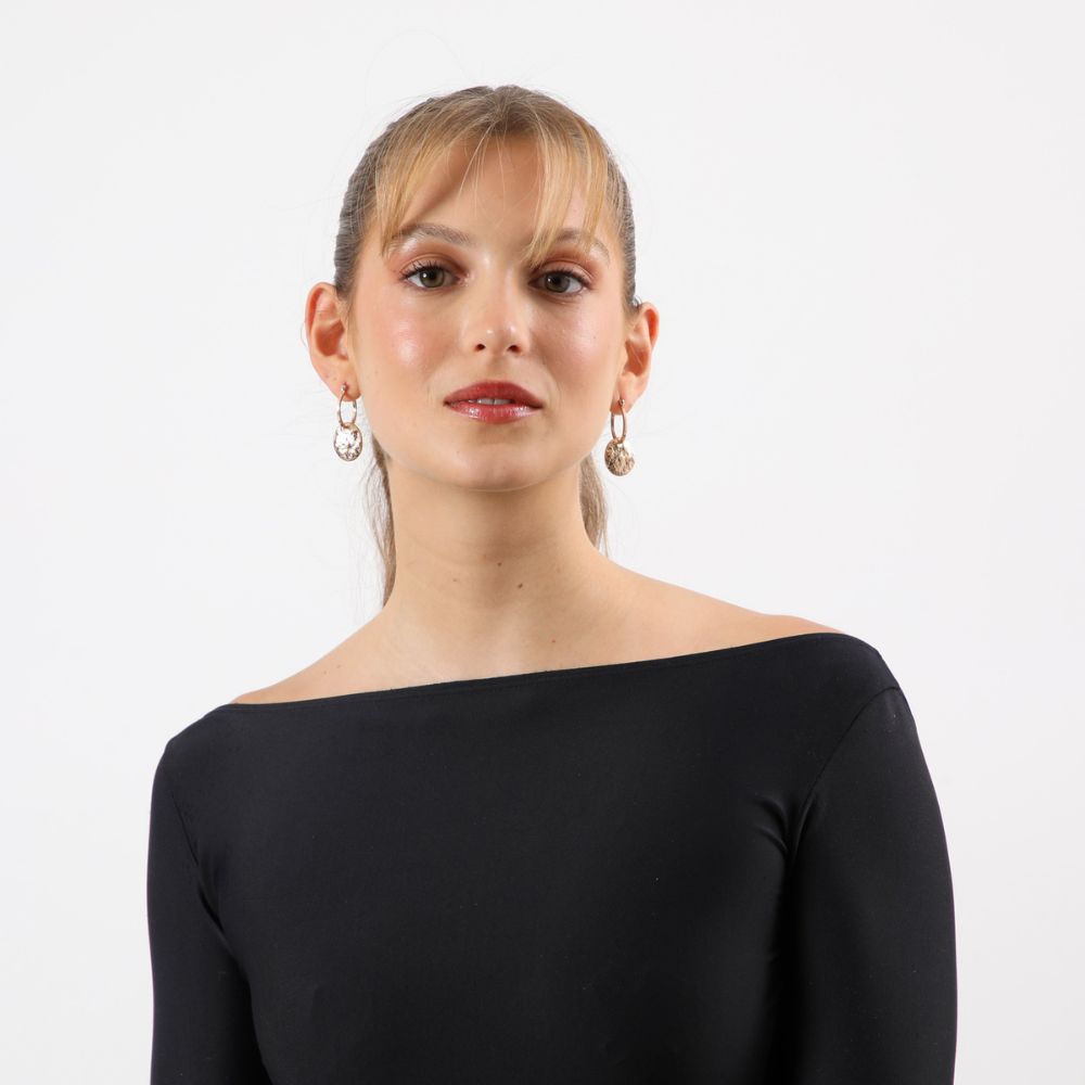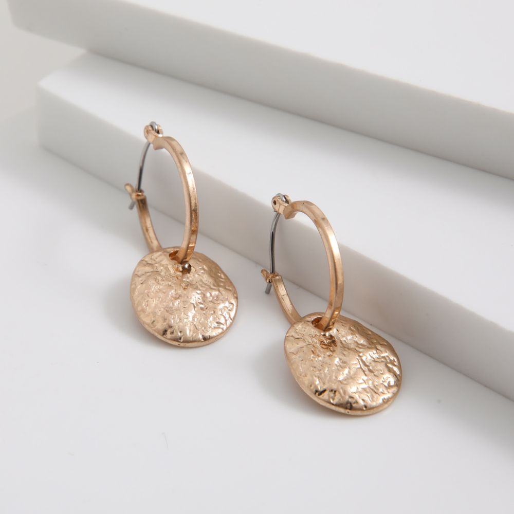 Aros Dorados Tipo Argolla, Con Un Dije Circular Con Textura.