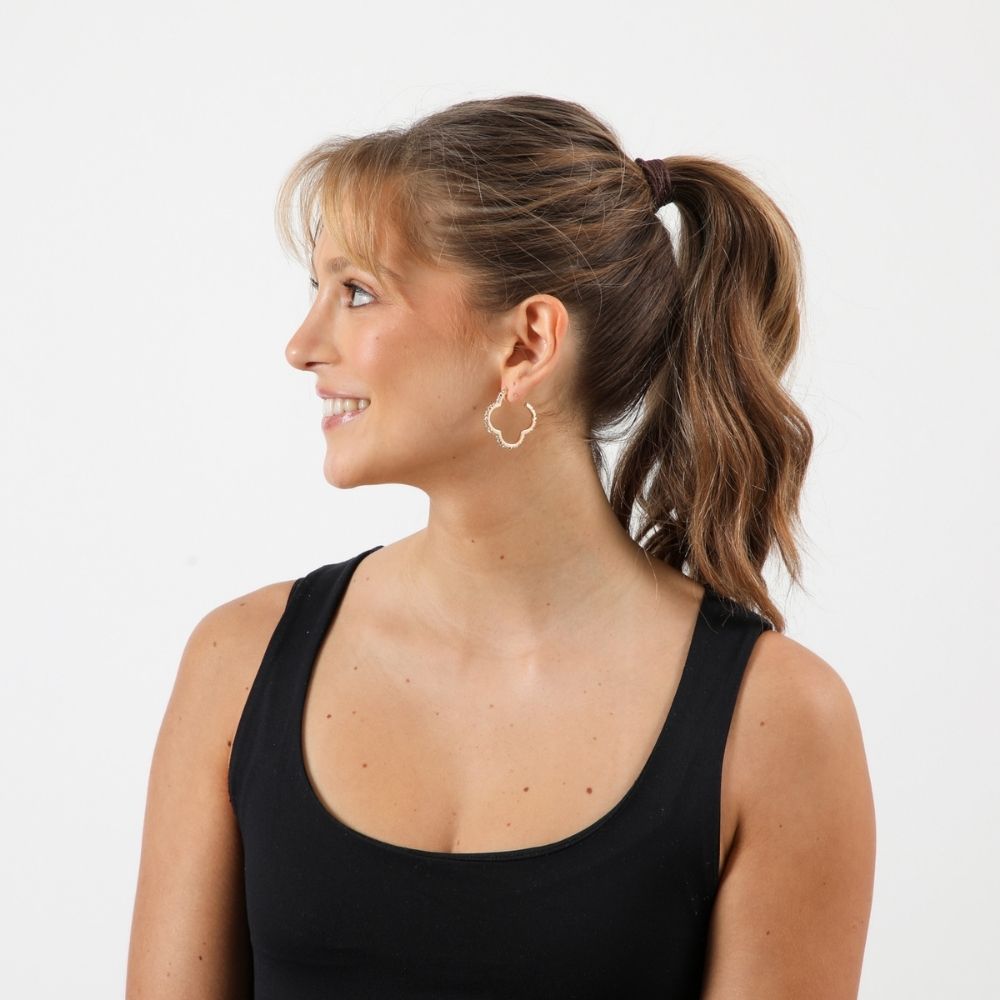 Aros De Argolla Dorada En Forma De Trebol Con Textura Y Brillantes De Fantasía.