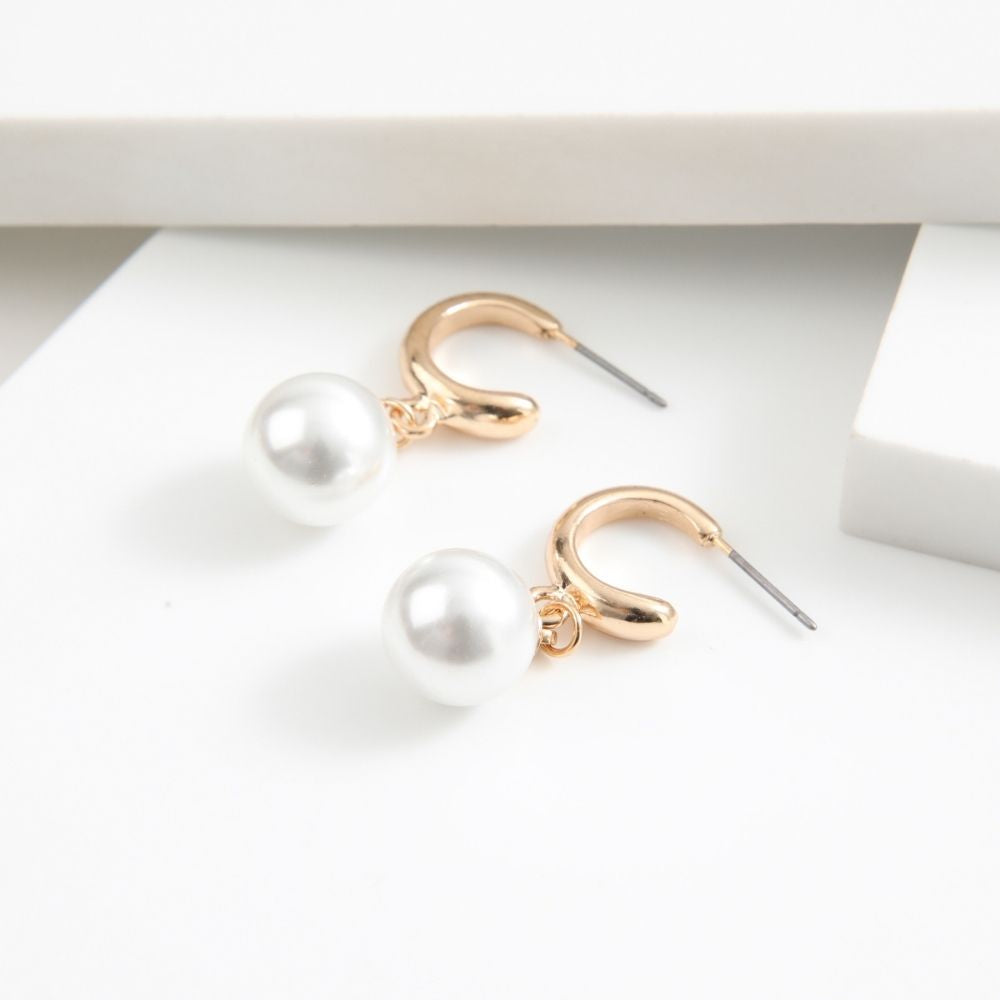 Aros De Argolla Dorada Con Dije De Perla De Fantasía.