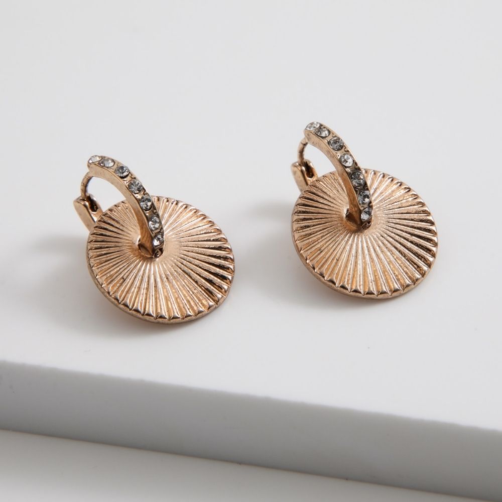 Aro Tipo Argolla Con Brillantes De Fantasía Con Un Dije Circular En El Centro.