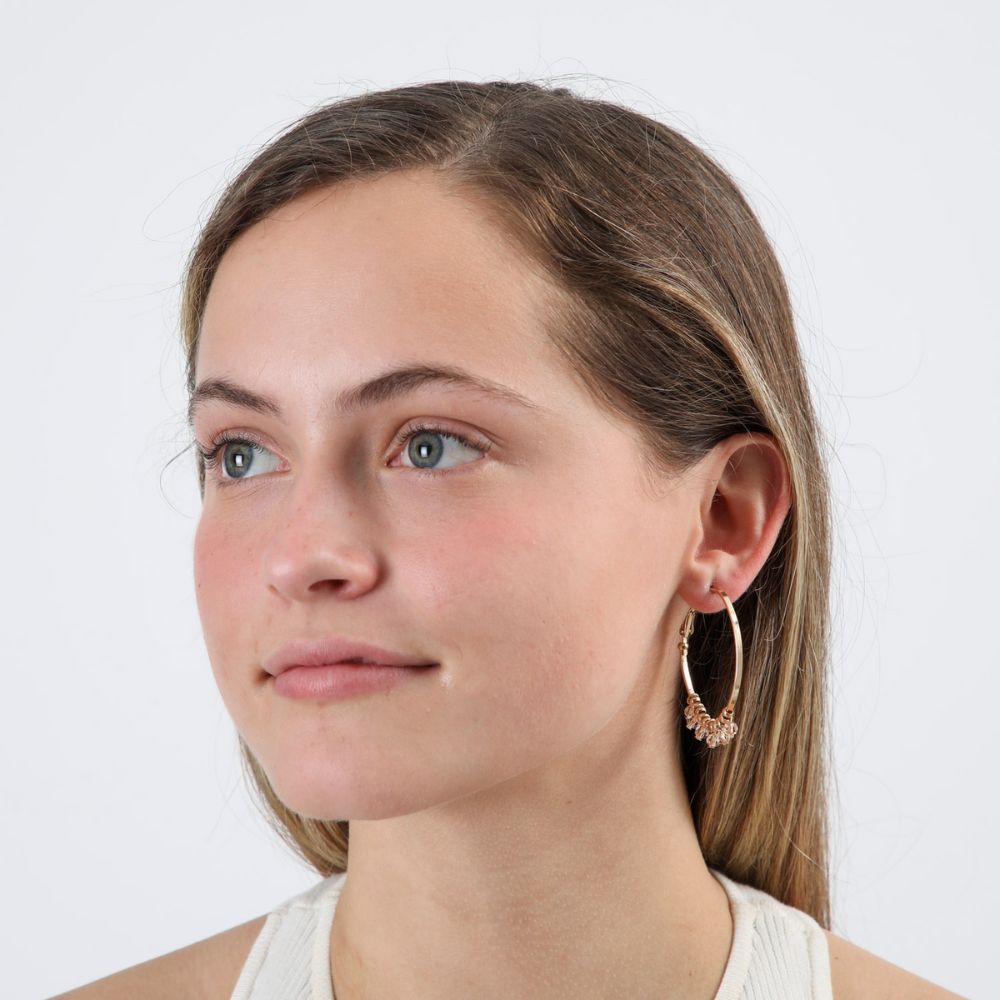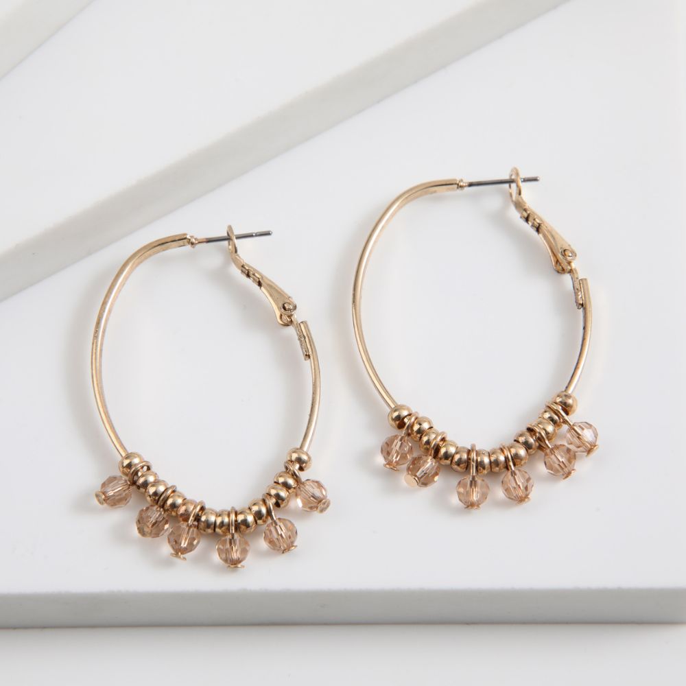 Aros tipo argollas grandes con mostacillas color bronce de fantasía.
