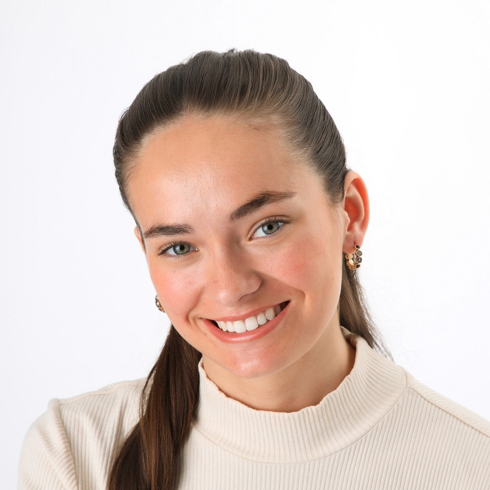 Aros tipo argolla dorada con diseño irregular y brillos incrustados en tonos ámbar y transparentes. Un accesorio moderno y con textura para complementar el look diario.