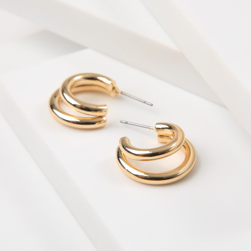 Argollas en color dorado y acabado brillante. Presentan sistema de cierre con tope. Un accesorio de estilo moderno y funcional, práctico para el día a día.