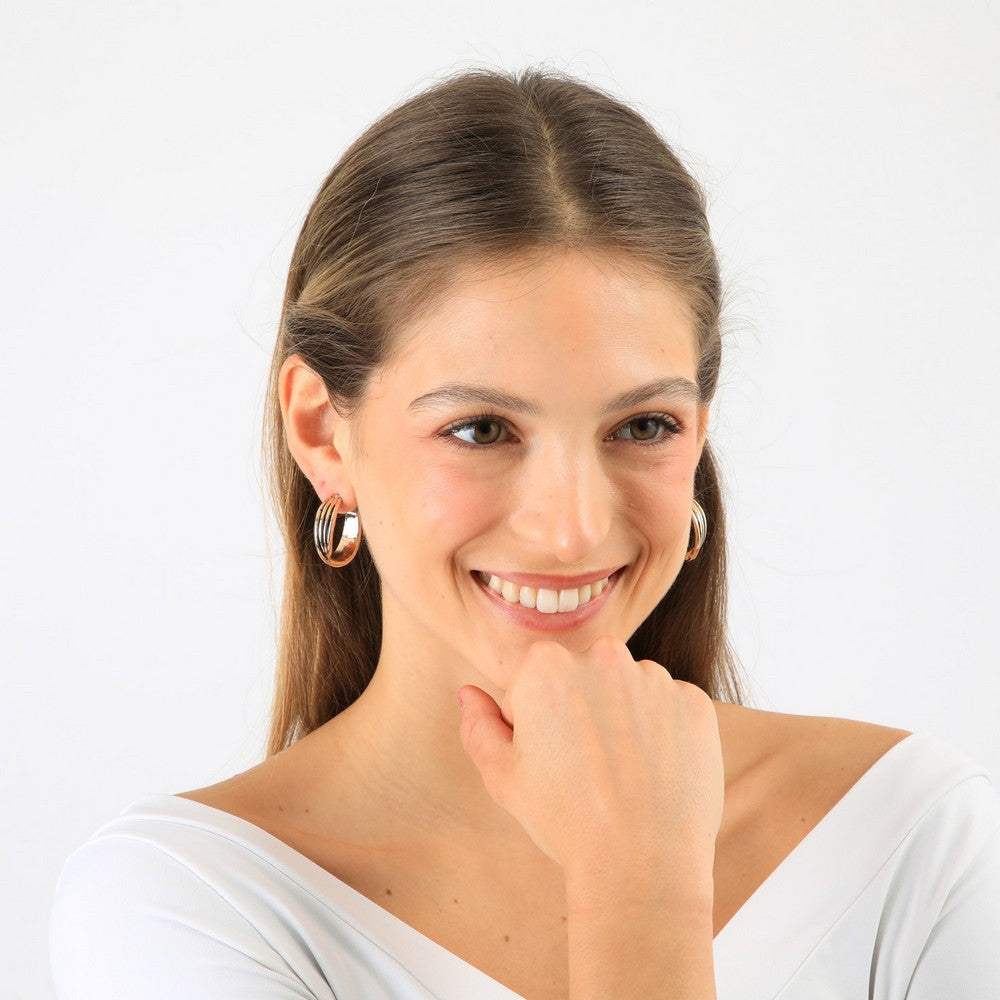 Aros tipo argolla en color dorado, con diseño entrelazado y acabado brillante. Un accesorio sencillo y moderno para uso diario.