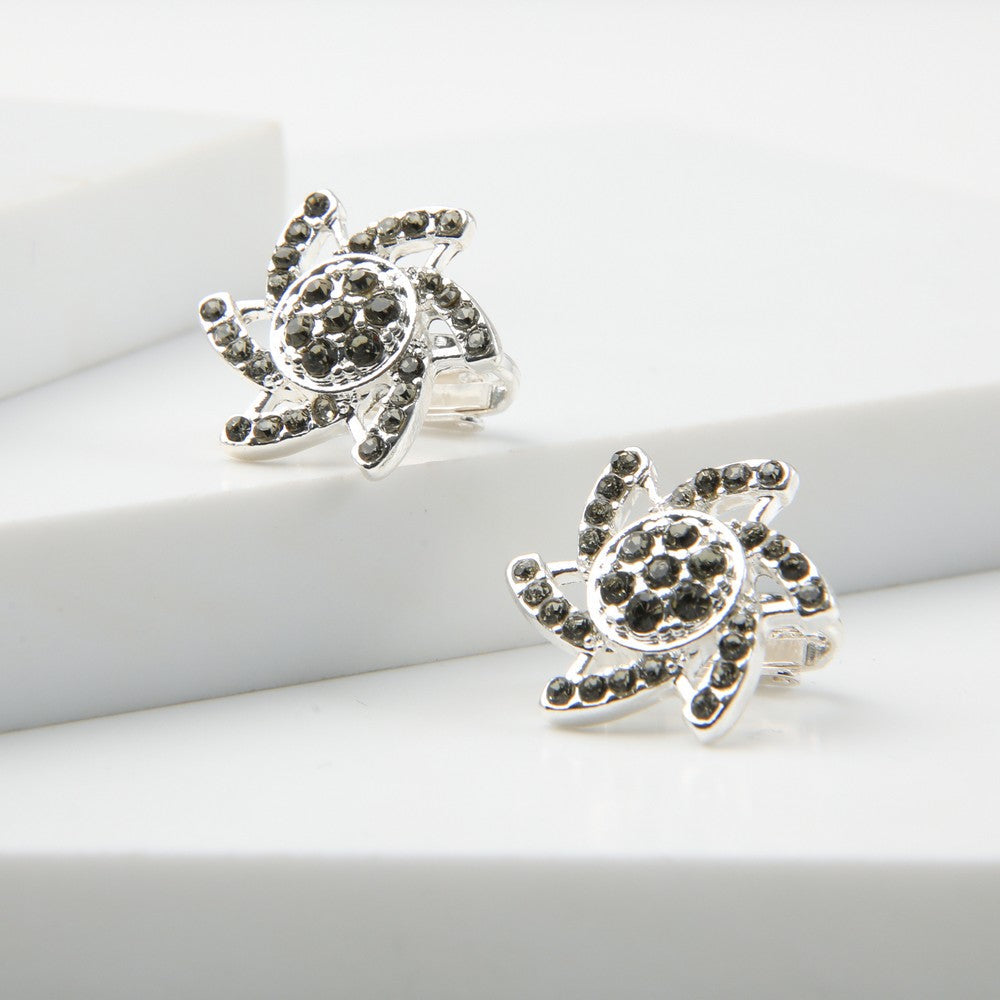 Aros de cierre clip, ideales para usar sin perforación. Presentan un diseño en acabado plateado, completamente decorado con tipo cristales verdes que aportan brillo y profundidad. Su composición compacta los hace elegantes y llamativos a la vez, perfectos para elevar un look de noche o darle un toque sofisticado a un outfit más simple.
