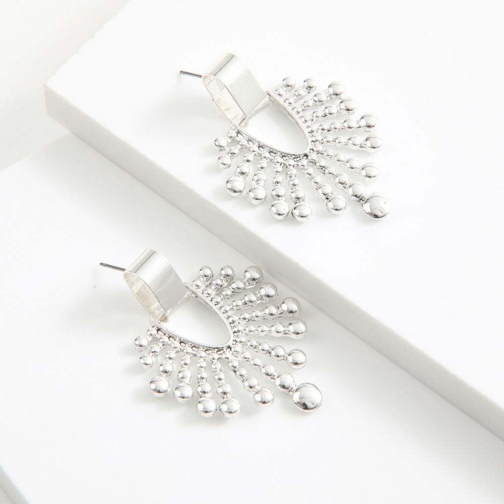 Aros Largos Pegados Plateados En Forma De "U" Con Circulos Unidos Entre Ellos.