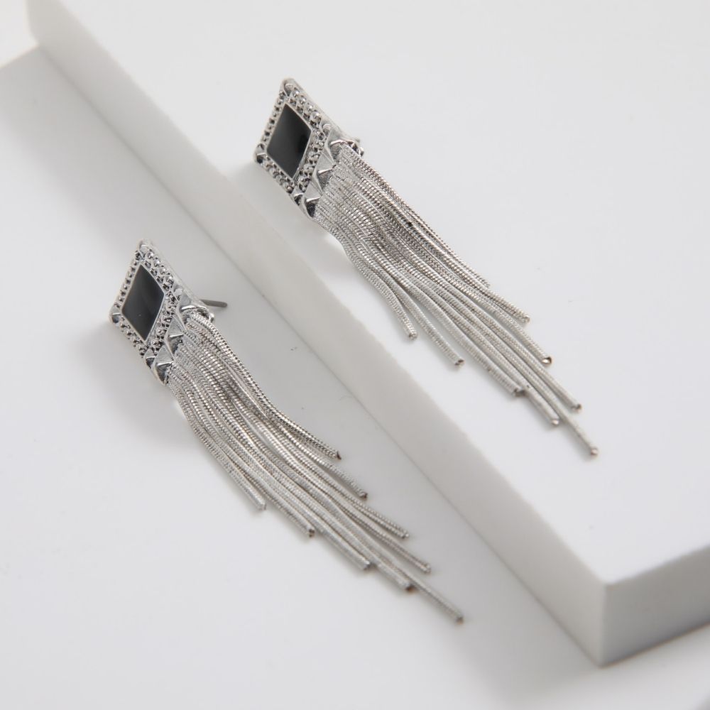 Aros Largos Plateados De Forma Cuadrada Y Cuerdas Largas.