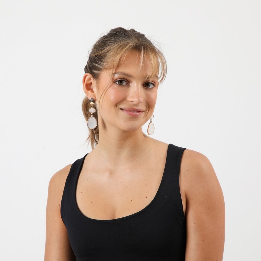 Aros Largos Dorados Con Pieza Metálica Dorada Y Formas Circulares Abstractas Con Terminaciones Nacaradas