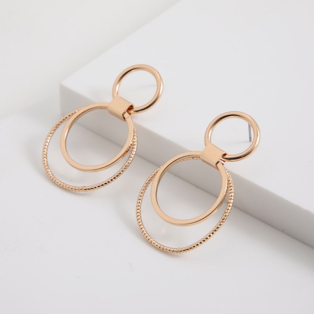 Aros Dorados Tipo Argolla, Con 3 Argollas De Diferentes Tamaños.