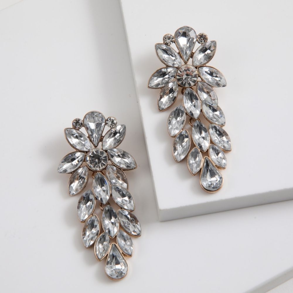 Aros Largos Dorados De Flores De Piedras De Fantasía.