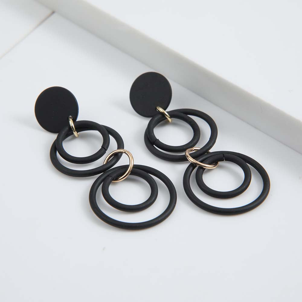 Aros iD Agnes largos negros. Aros colgantes compuesto de argollas en color negro.