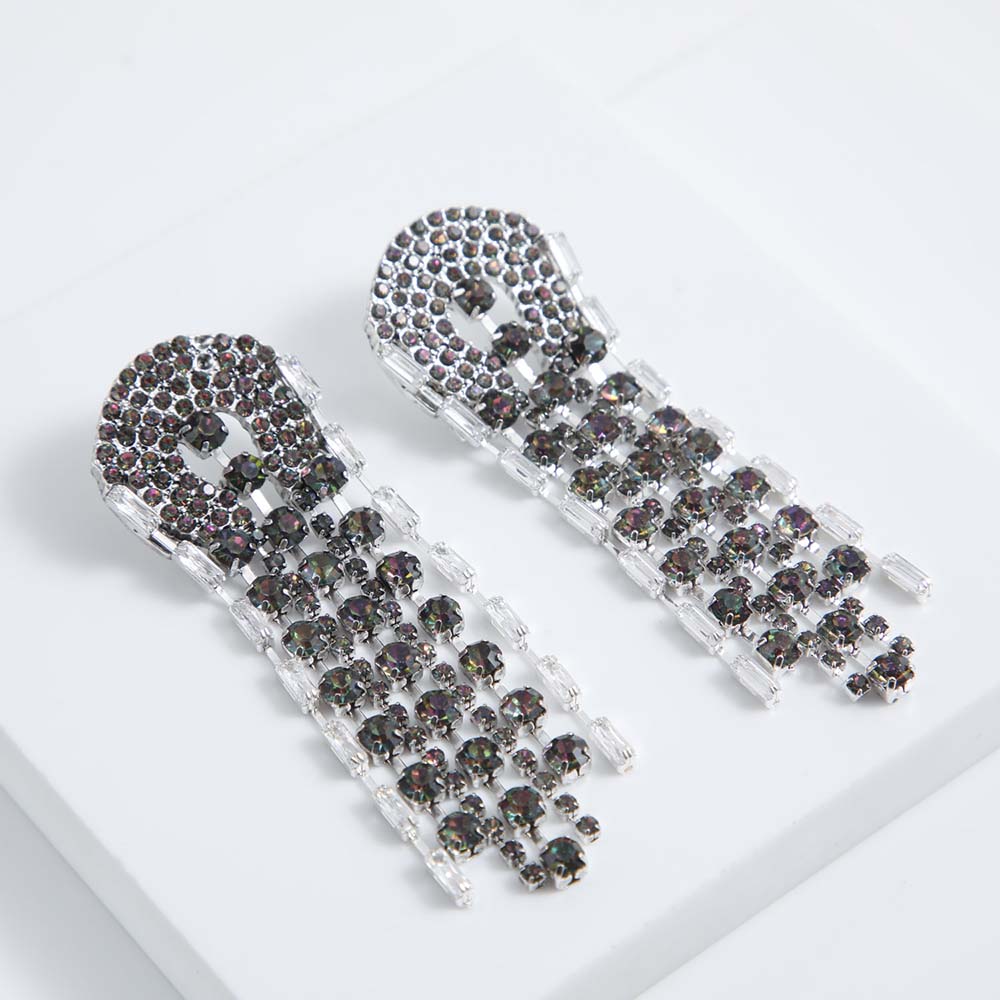 Aros Humana Drago Largos Plateados que pertenecen al Especial fiesta. Aros con piedras brillantes tornasol plateados.