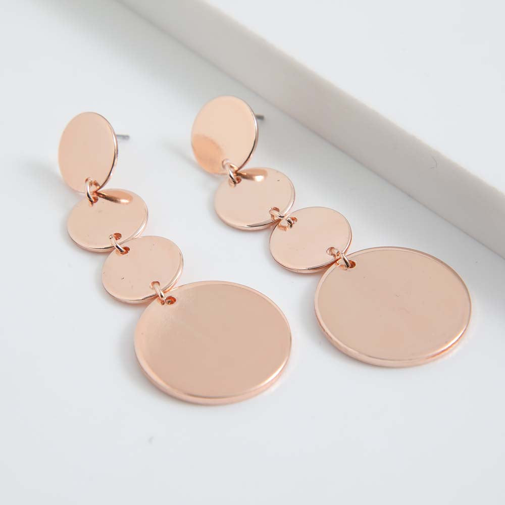 Aros iD Jimi largos dorados. Aros con diseño de círculos unidos entre sí.