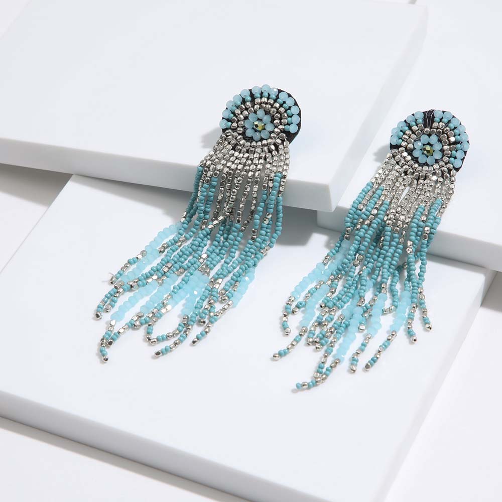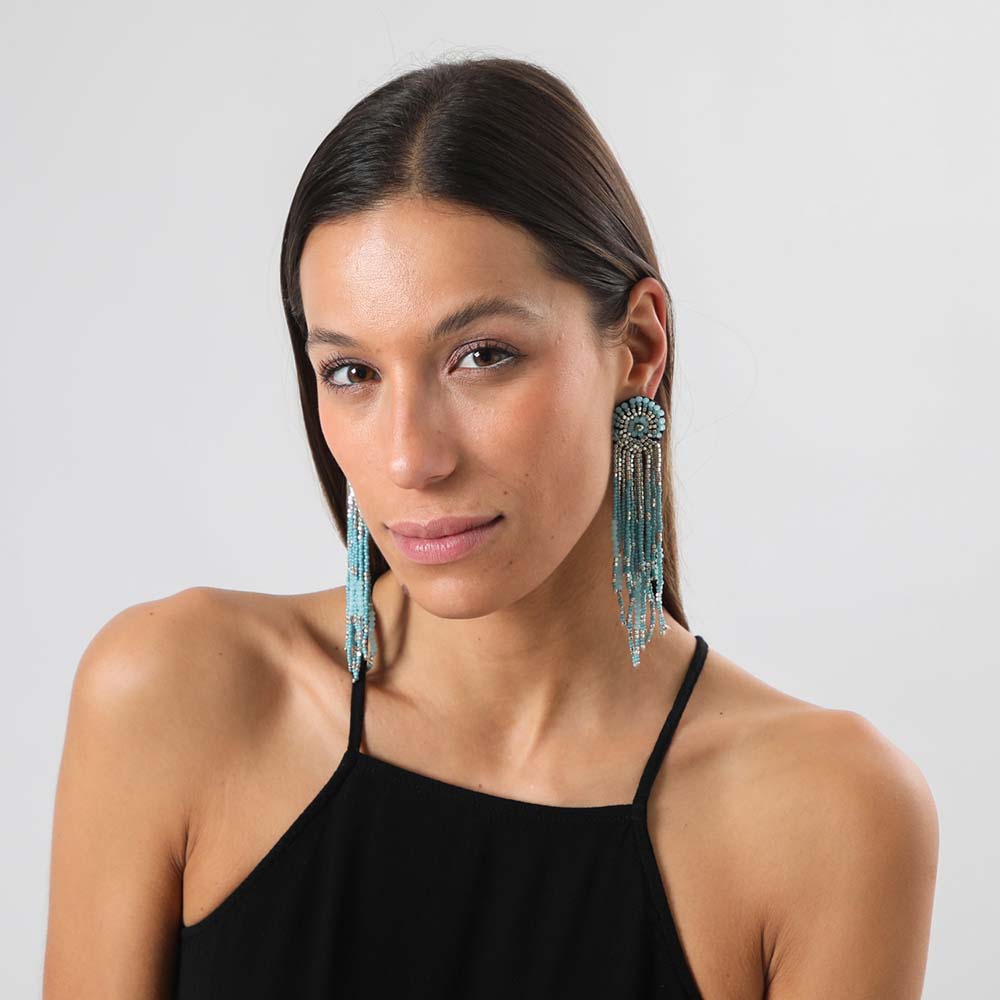 Aros Tatienne Noe largos celeste. Aros combinados con mostacillas celestes y plateados.