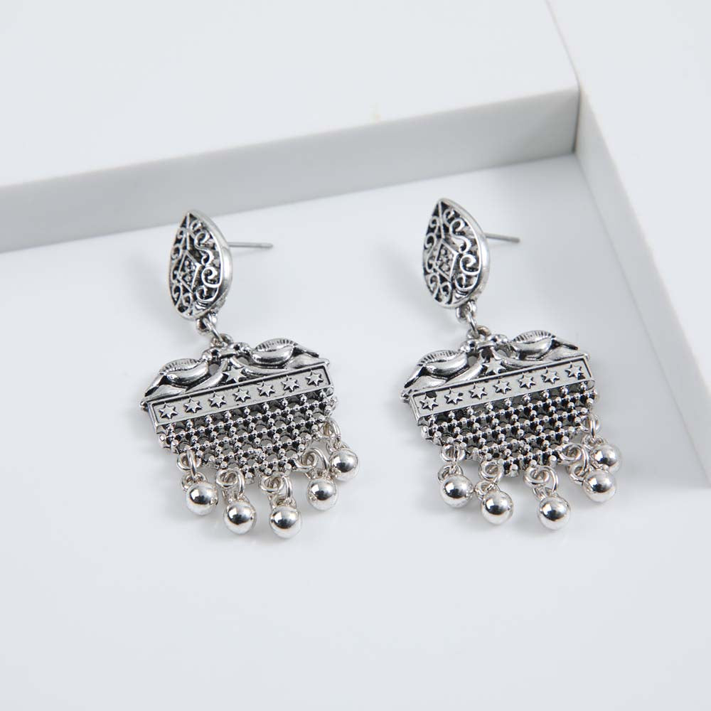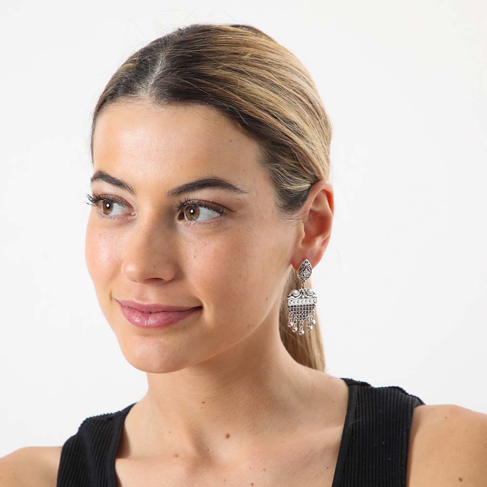 Aros iD Phuket plateados. Aros colgantes tallados.