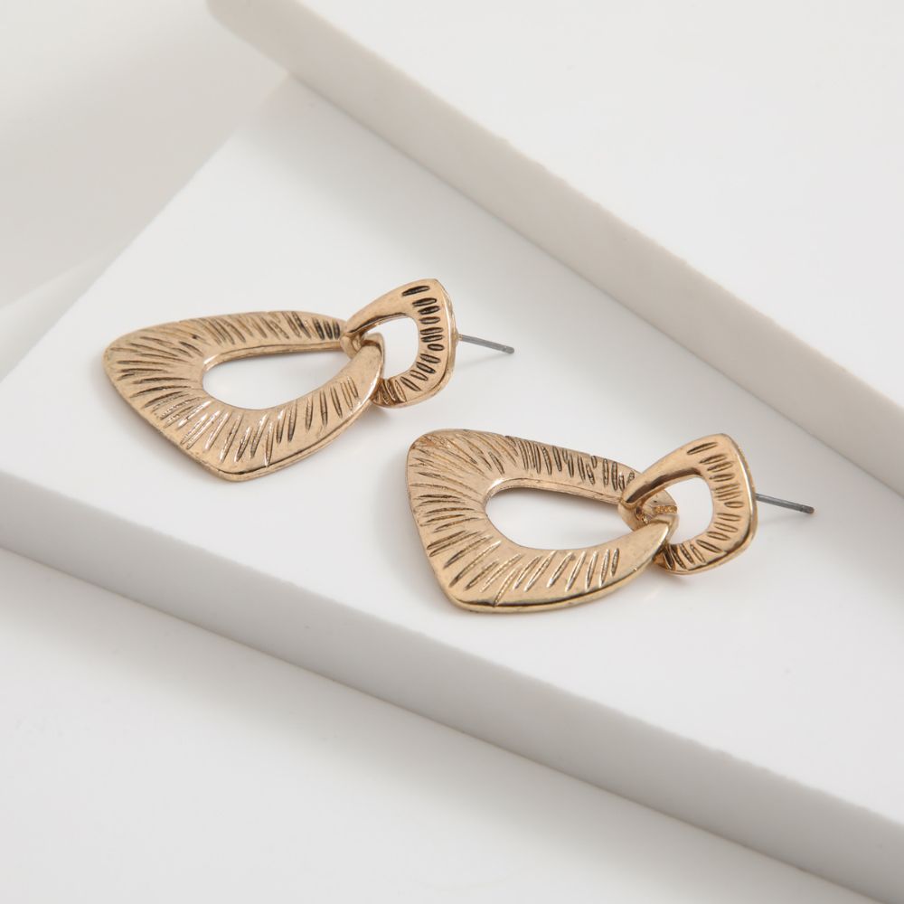 Aros medianos dorado con dos argollas con un hueco en el centro.
