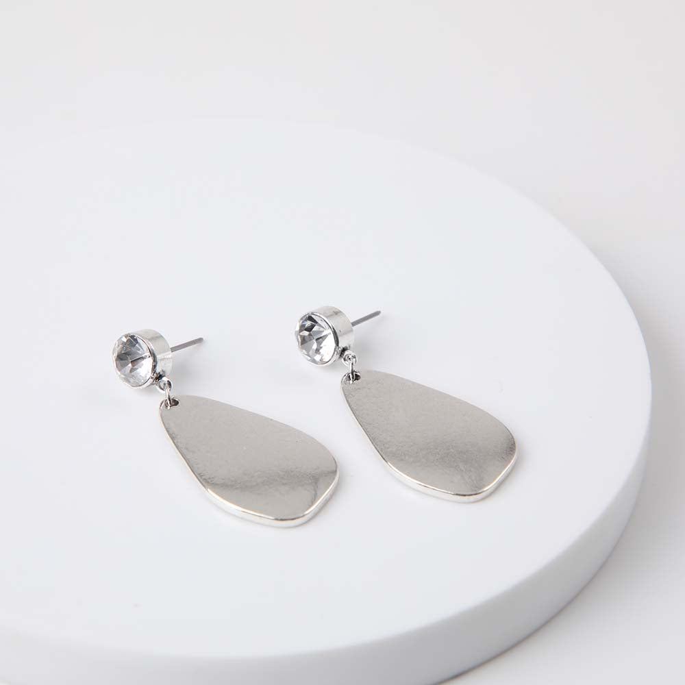 Aros Humana Tuberosa medianos plateados que pertenecen a la colección Nephrite Green. Aros compuestos por una piedra brillante de la que cae una pieza ovalada lisa.
