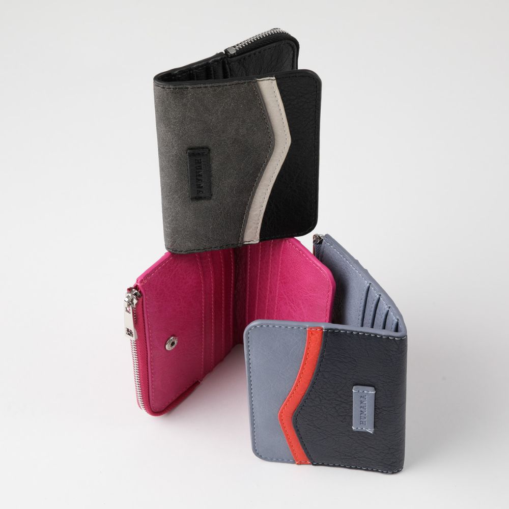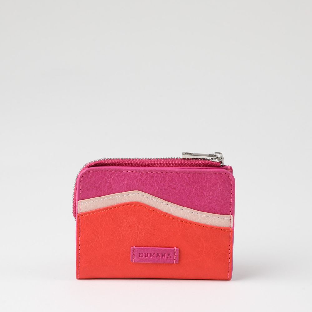 Billetera chica ecocuero tonos rosados. Capacidad para 8 tarjetas y monedero con cierre.