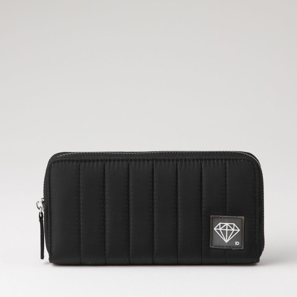 Billetera grande nylon cierre quilted negra . Apertura tipo acordeon con capacidad para 10 tarjetas y monedero interno.