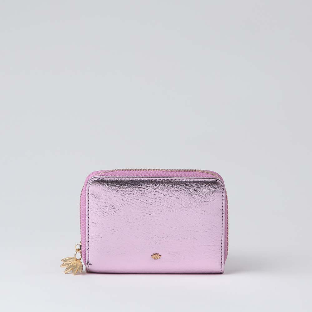 Billetera Mediana i-D Unique de color rosado. Billetera con bolsillo principal con cierre y bolsillos interiores. Confeccionada en ecocuero de color rosado metalizado.