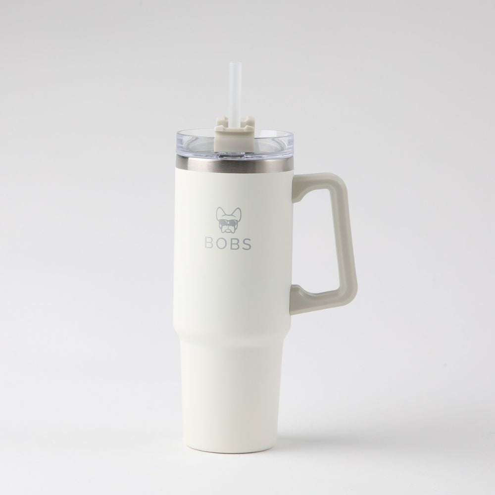Botella de acero inoxidable blanca con bombilla plástica. Aislante con capacidad de 887 ml, a prueba de derrame.