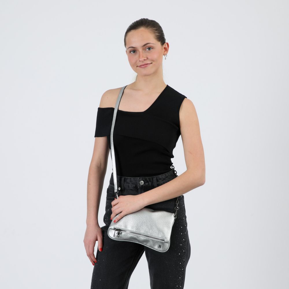 Cartera Bandolera Delia Ecocuero Plateado Humana