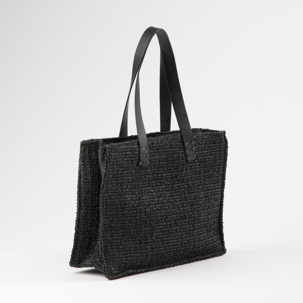 Cartera Tote Meli Tipo rafia tejida negro Playa Humana