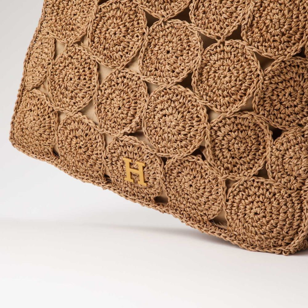 Cartera Tote Mila Tipo rafia tejida café Playa Humana