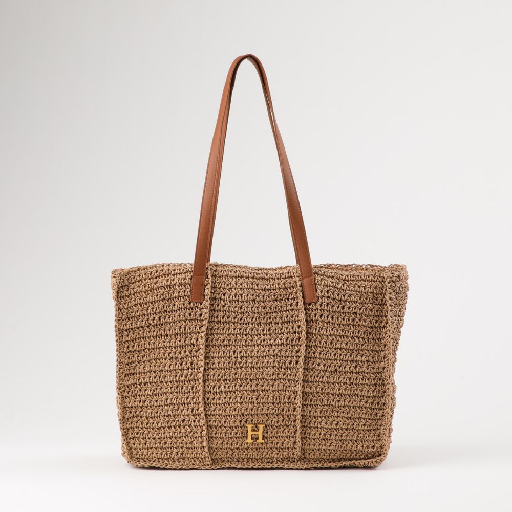Cartera Tote Mona Tipo Rafia Tejida Café Playa Humana