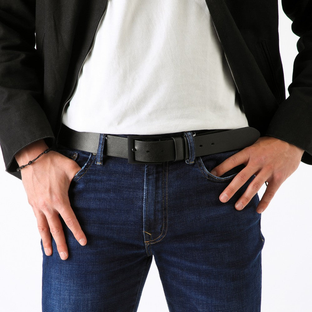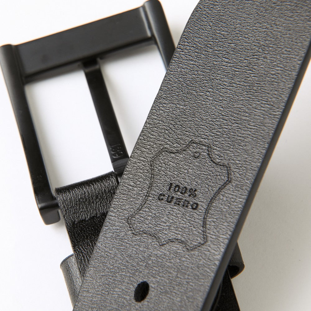 Cinturón de color negro, con diseño liso y hebilla rectangular metálica en tono negro. Un accesorio clásico y funcional, fácil de combinar para uso diario.