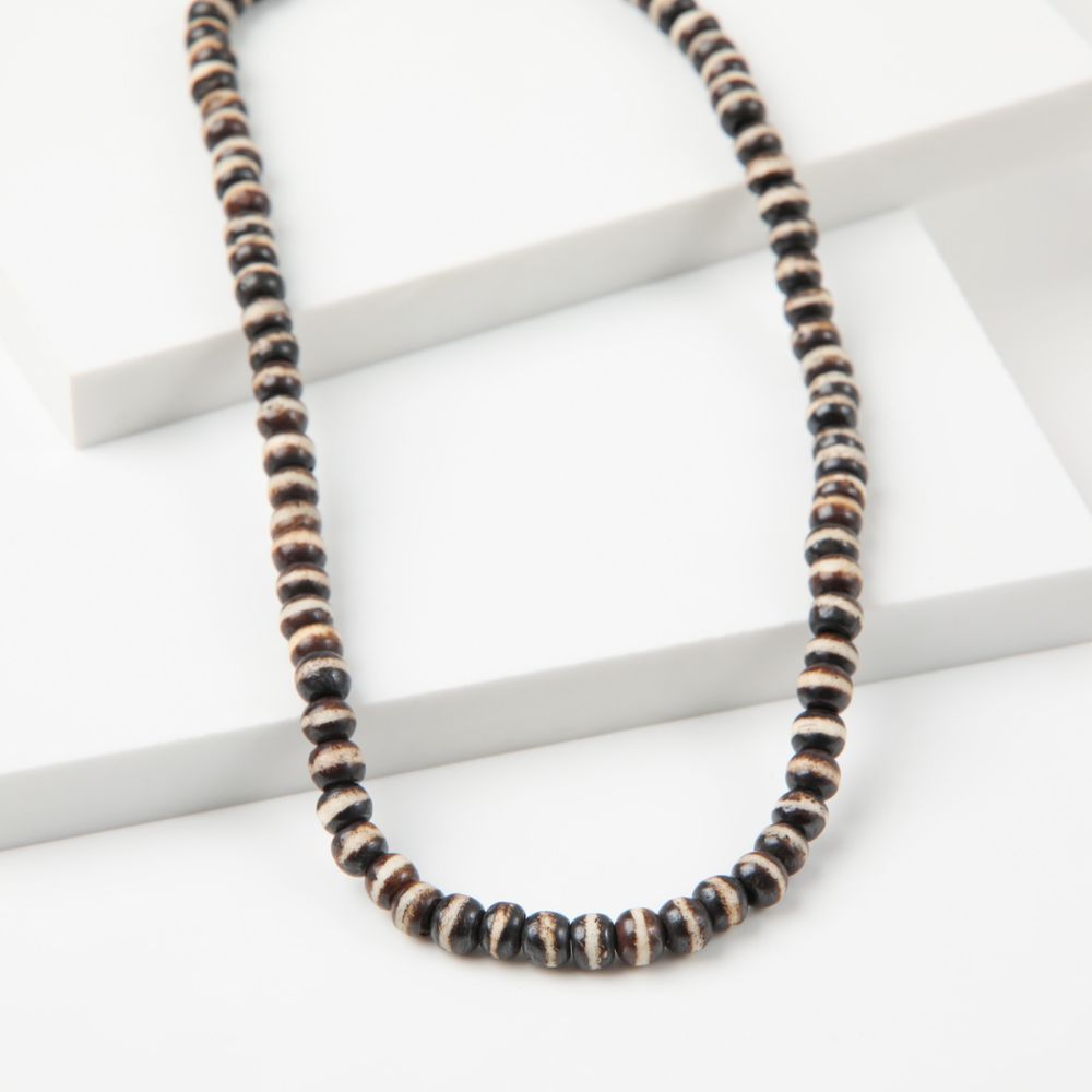 Collar Gorillaz café de mostacillas de color café con detalle beige.