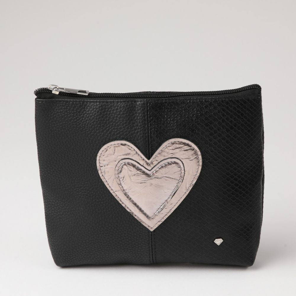 Cosmetiquero ecocuero blanco y dorado texturas corazon.