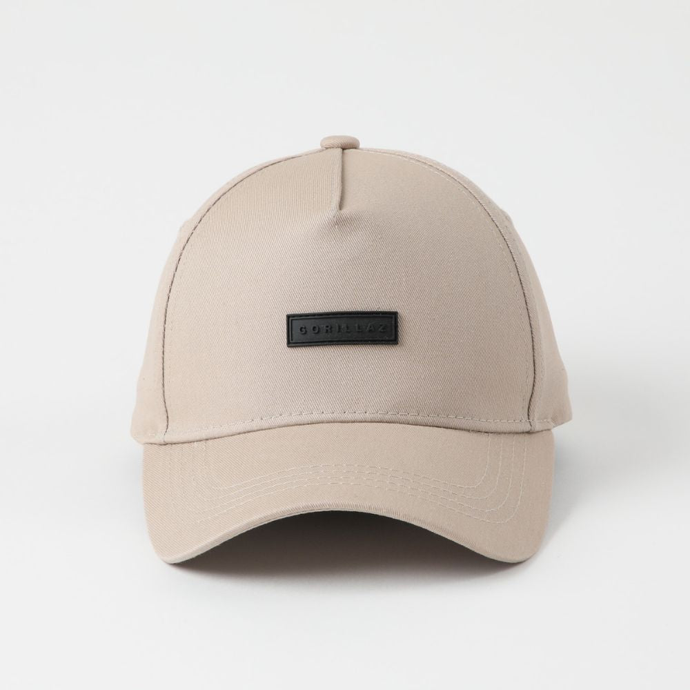 Jockey beige con ajuste en la parte trasera y logo de goma negro con texto gorillaz.