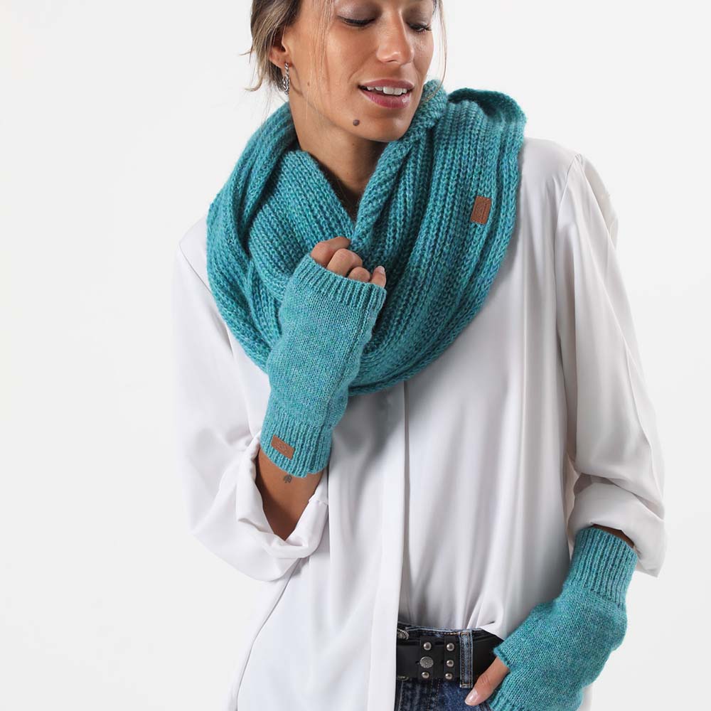 Guantes Humana Lady de color celeste. Mitones sin dedos.