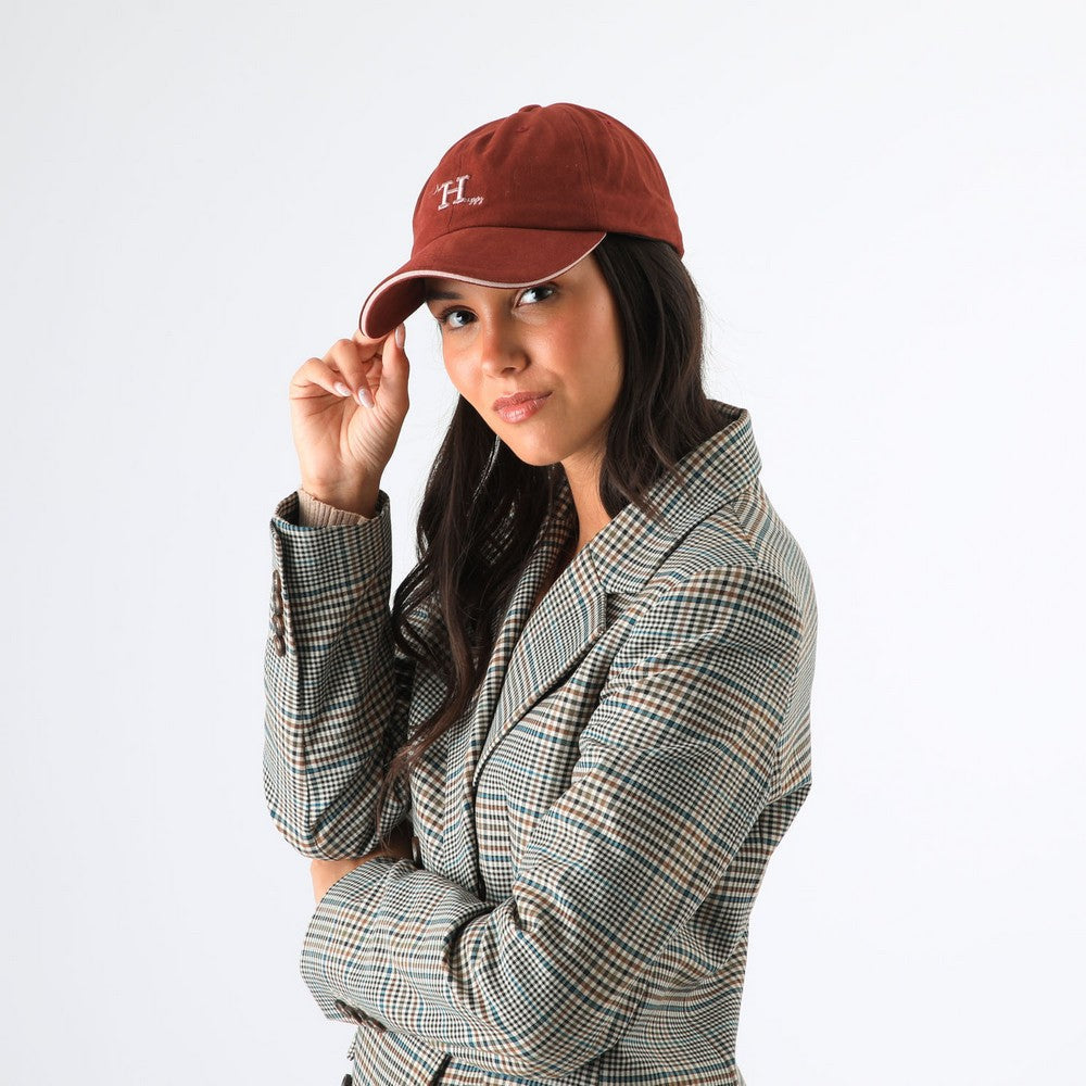 Gorro tipo baseball en color burdeos, confeccionado en tela de acabado mate. Visera curva con vivo en contraste y en el frente bordado color mauve. En la parte posterior presenta bordado HUMANA al tono, integrado de forma discreta al diseño. Cuenta con orificios de ventilación bordados, botón superior forrado y sistema de ajuste trasero con hebilla metálica. Un diseño clásico y funcional, cómodo para uso diario y fácil de combinar.