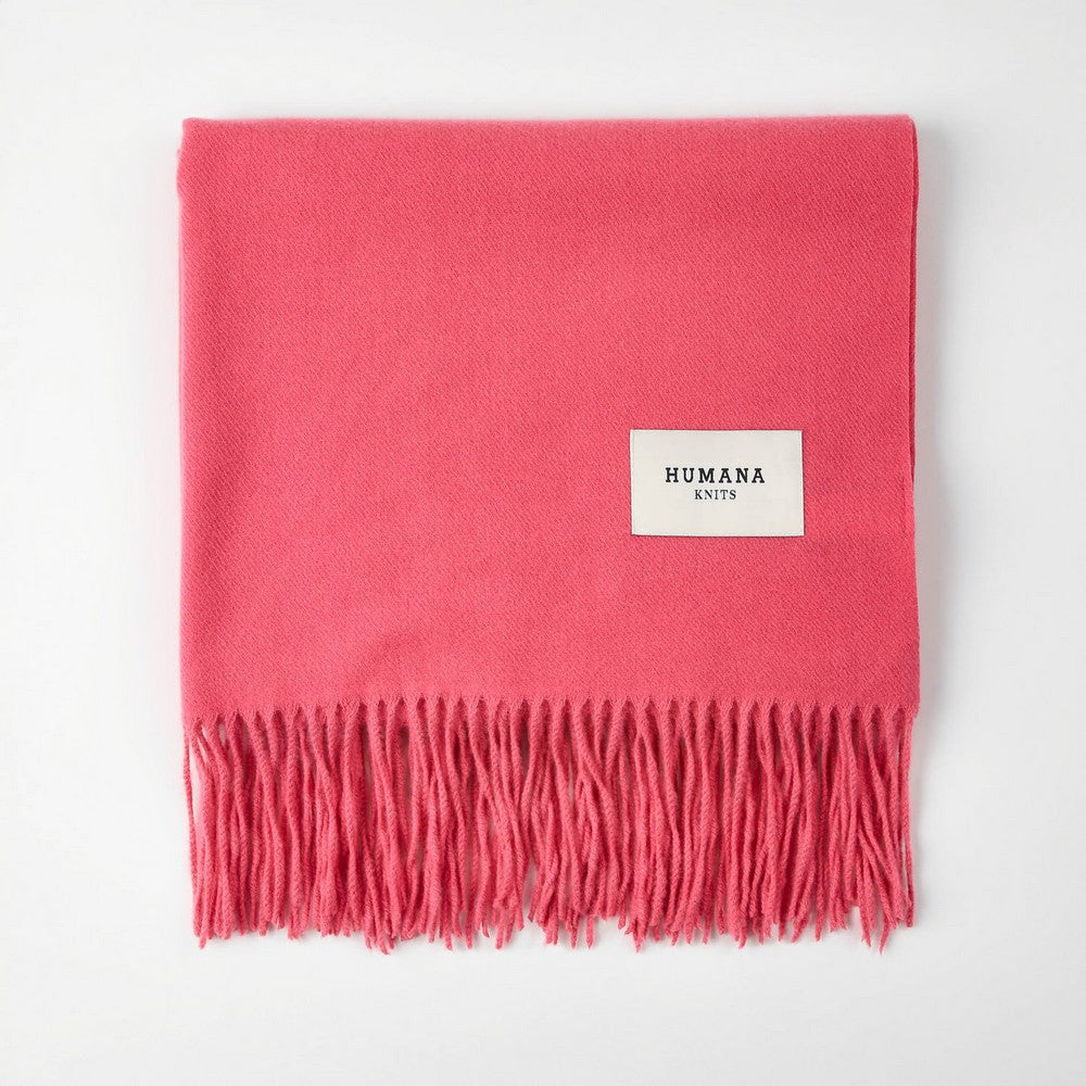 Manta tejida en lana color rosado, con terminación lisa y flecos largos en el borde inferior. Incluye caída flexible para usar sobre el cuello u hombros y etiqueta textil con logo H en color blanco. De uso práctico para abrigar y complementar looks diarios. Un diseño moderno y funcional.