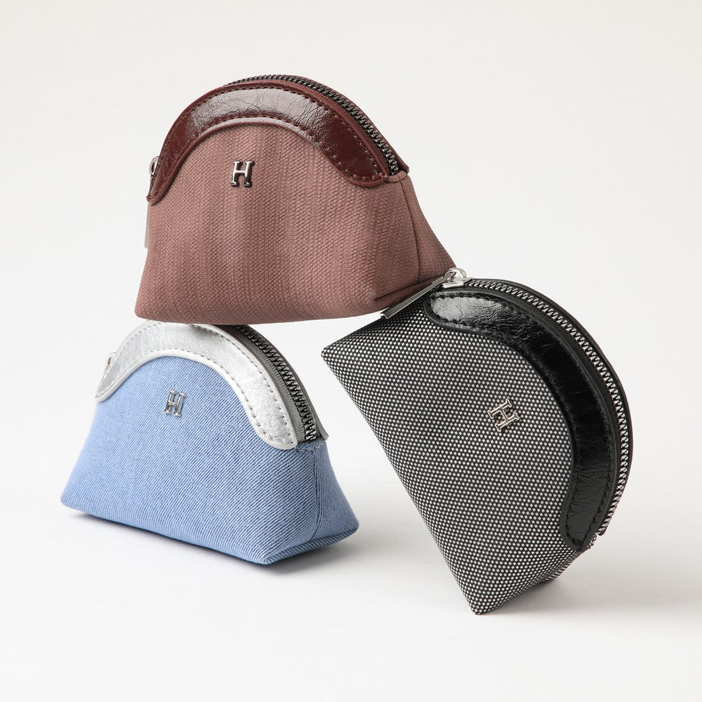 Monedero de formato compacto, en tono azul con detalle superior en color plateado. Presenta cierre superior con cierre metálico y logo de la marca aplicado al frente. Ideal para llevar dentro de carteras o bolsos.