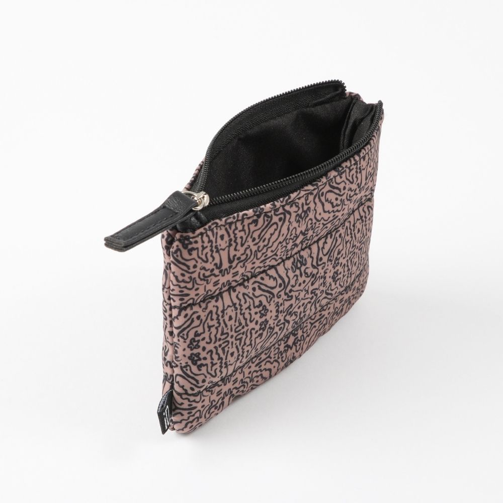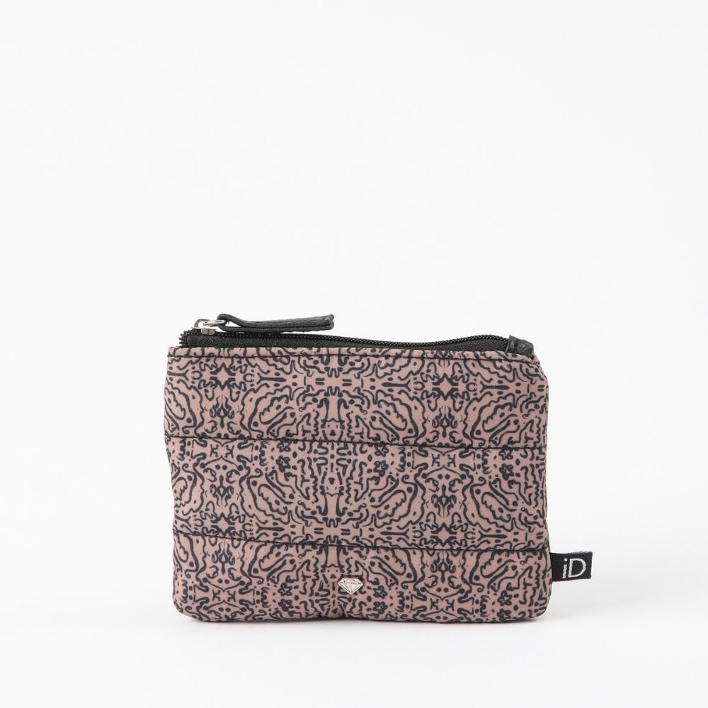 Billetera mediana tipo acordeón de nylon dorado con motivo de estrellas, con capacidad para 6 tarjetas, 3 espacios abiertos y un monedero con cierre.