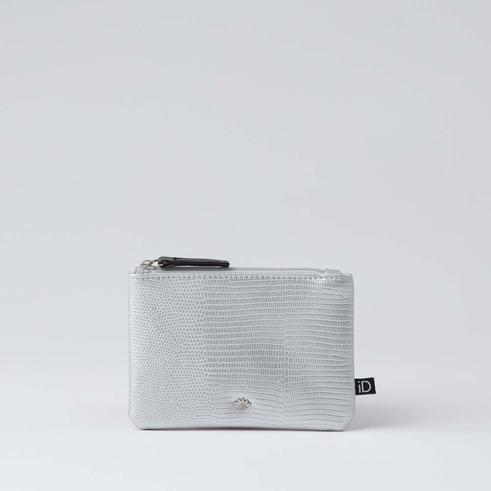 Monedero iD Craft de color plateado. Monedero de ecocuero con textura croco.