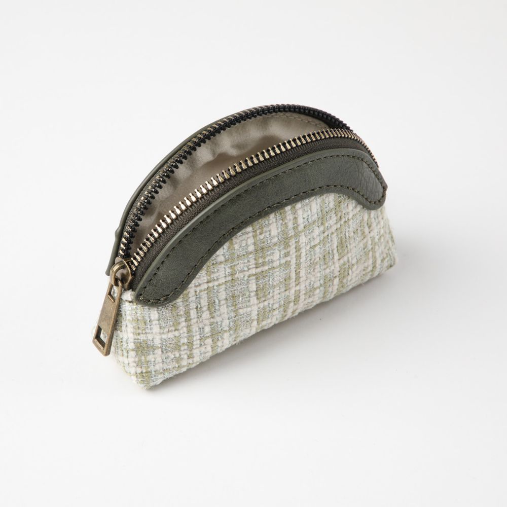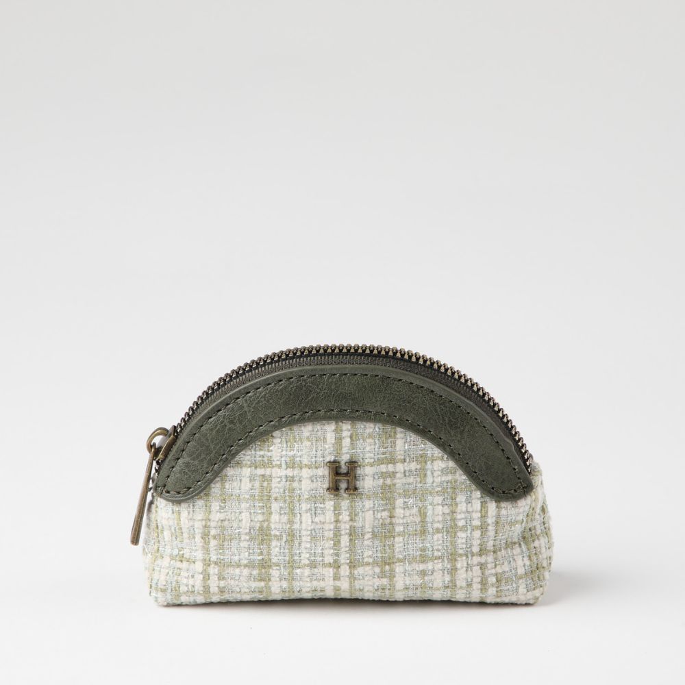 Monedero cierre de tela verde manchas y ecocuero verde.