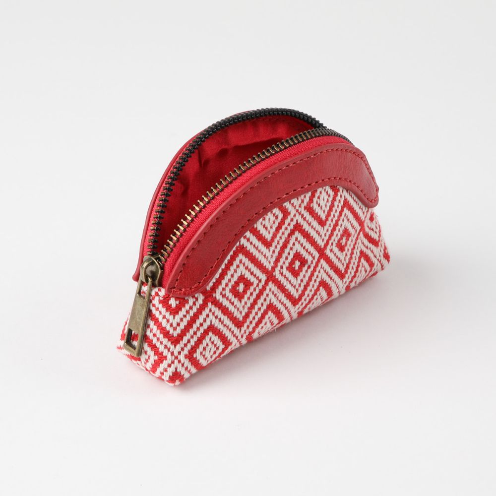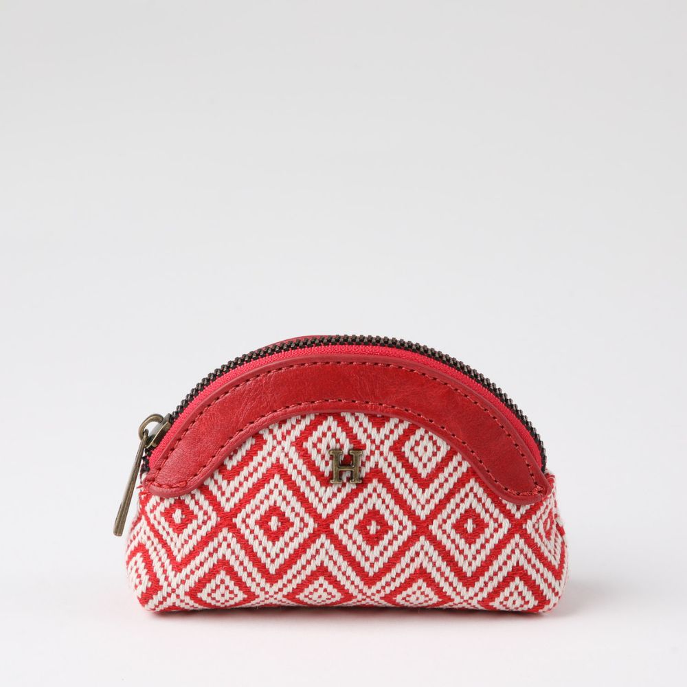 Monedero cierre de tela rombos rojos y ecocuero rojo.