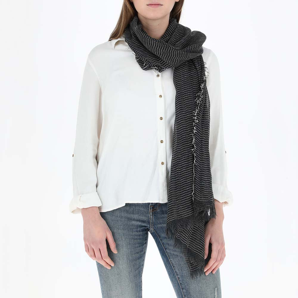 Pañuelo Humana black trama de color negro que pertenece a la colección Neo Etnic. Contiene lineas de hilo blanco.
