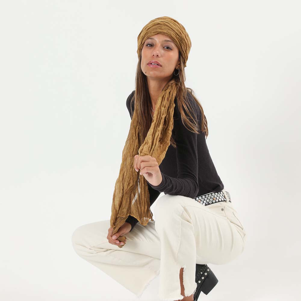 Pañuelo Liso Humana Kat de color café perteneciente a la colección Warm Camouflage. Pañuelo de color café solido caracterizado por presentar una superficie rugosa.