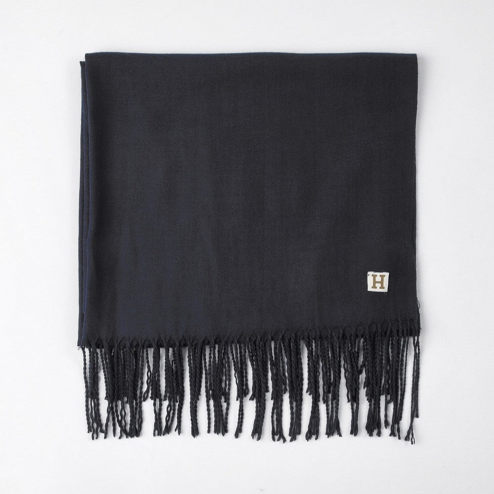 Pañuelo en color azul marino liso, confeccionado en tela liviana y suave al tacto. Presenta una terminación con flecos torsionados en el borde. Un accesorio práctico y fácil de combinar.