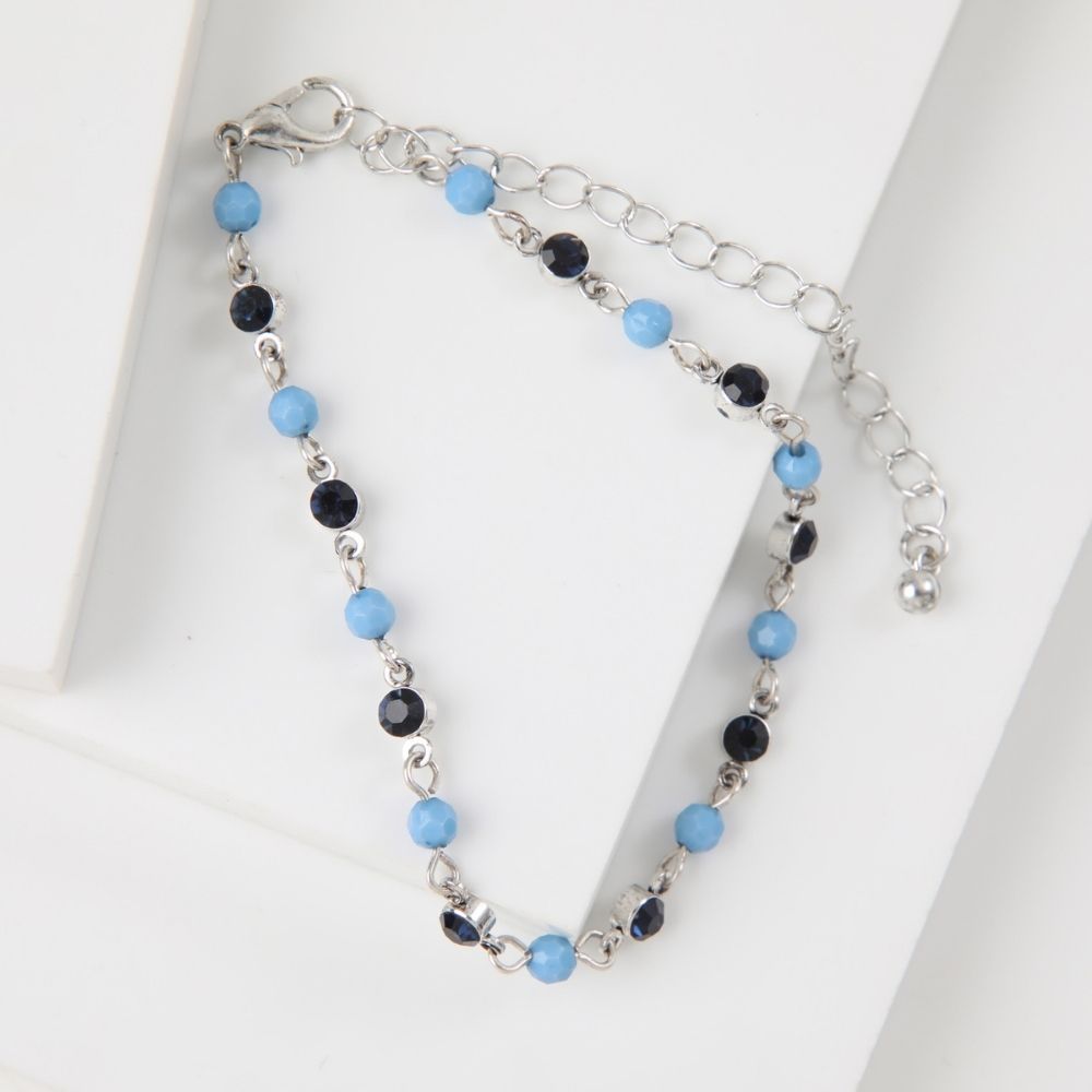 Pulsera de cadena de mostacillas celestes y brillantes de fantasía azul oscuro.