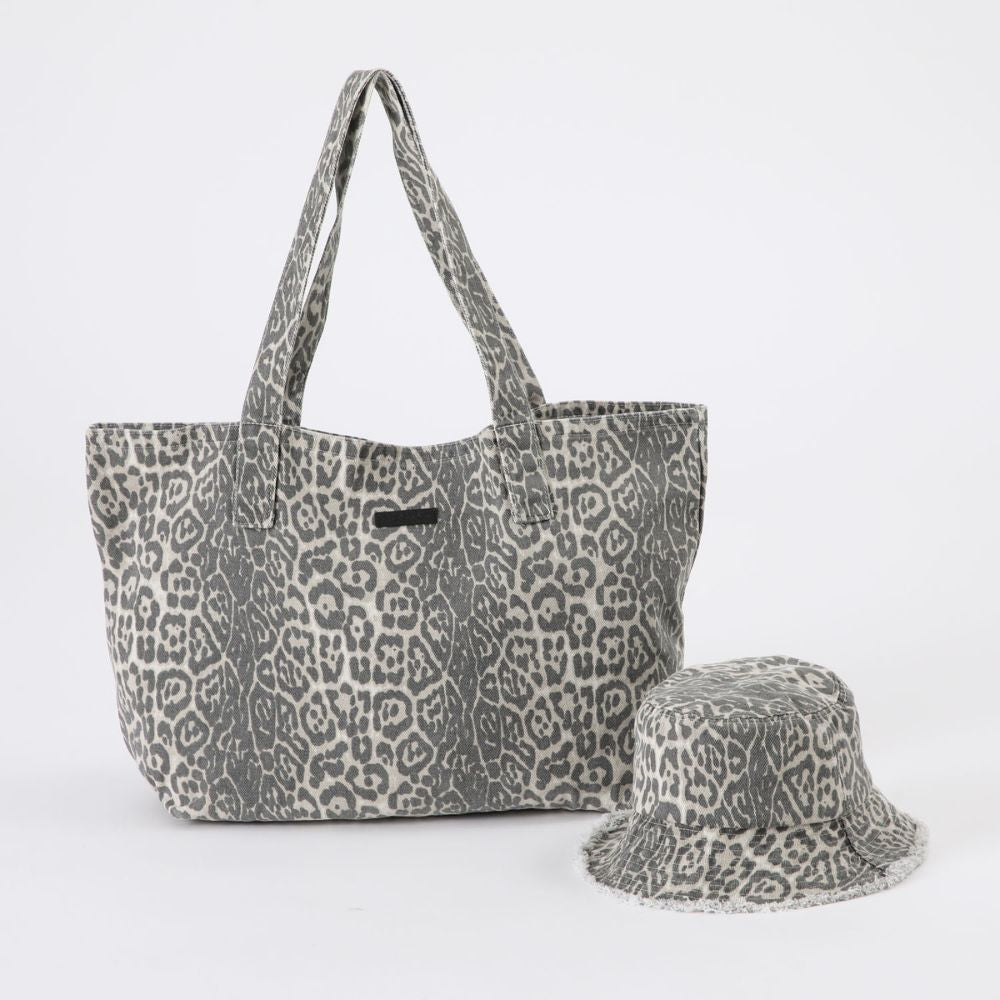 Set de Playa Cartera y Gorro Cayo Animal Print Gris Humana