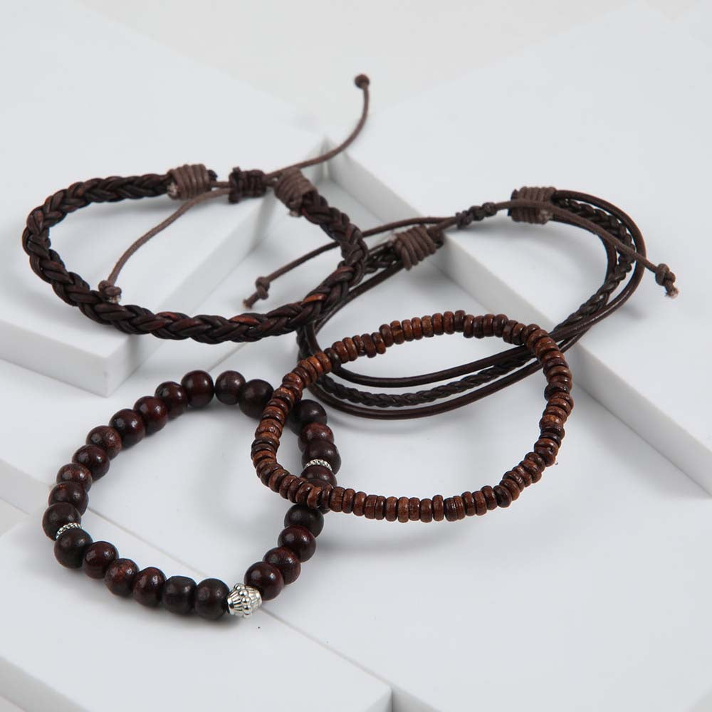 Set Pulseras Gorillaz Gozo de color café. Este set esta compuesto por dos pulsera tejidas de ecocuero café, y dos más de mostacillas café.