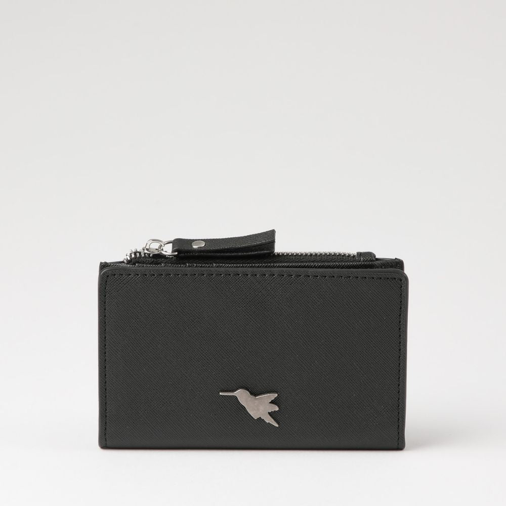 Tarjetero ecocuero negro. Capacidad para 6 tarjetas y monedero con cierre.
