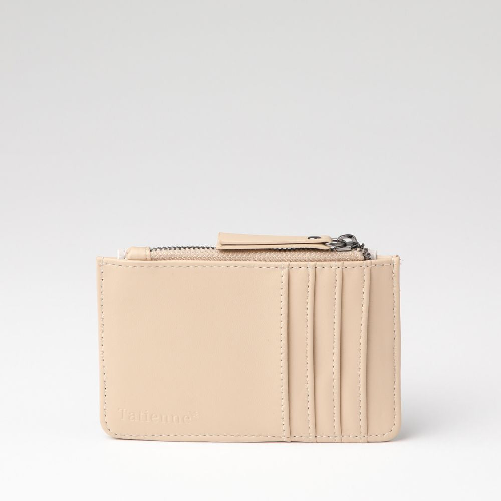 Tarjetero tapa ecocuero estampado serpiente blanco y liso beige. Capacidad para 5 tarjetas y monedero con cierre.